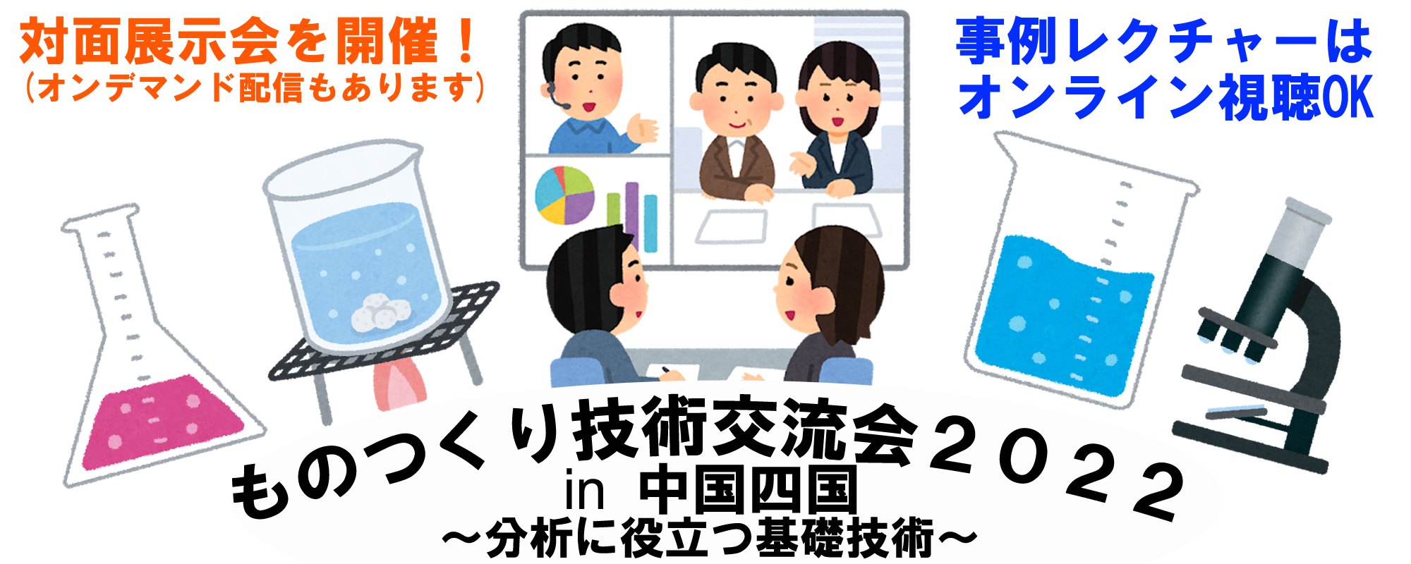 「ものつくり技術交流会2022 in 中国四国 ~分析に役立つ基礎技術~」は、中国四国を中心に展開している企業と、分析や分析化学に従事する産官学の研究者・技術者との間での共同研究の促進を目的とした交流イベントです。日本分析化学会第71年会(実行委員長:岡山大学 金田 隆 教授)とのジョイント・イベントとして、日本分析化学会分析イノベーション交流会が主催します。